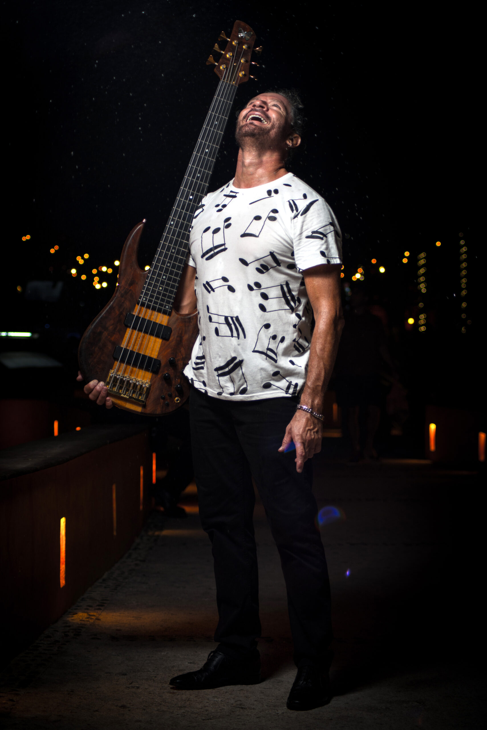 Para lograr melodías de mayor expresividad utiliza sus bajos Fretless, así como sus bajos electroacústicos para proyectos unplugged.